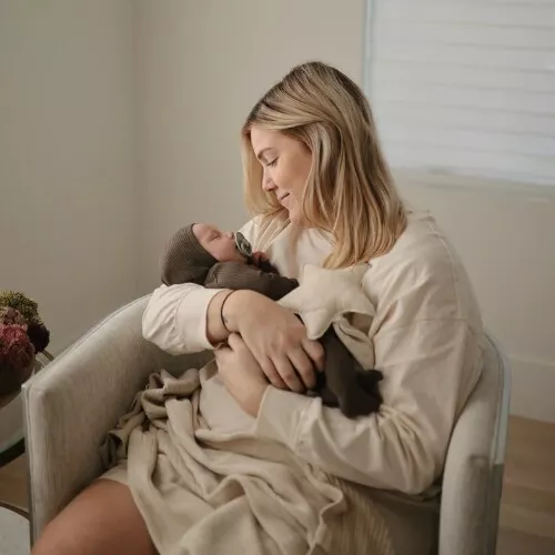 Een zacht mousseline knuffeldoekje ‘Lovey Blanket Star – Fog’ van het Amerikaanse merk Mushie om dicht bij te houden voor een knus en veilig gevoel.