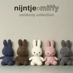 Nijntje lijkt tot leven te zijn gekomen in deze kleine knuffel uit de corduroy collectie van het merk Nijntje-Miffy. Met haar ronde oren en geborduurde snuit, is dit konijntje geruststellend en speels, precies zoals Dick Bruna haar ontworpen heeft.