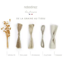 De milieuvriendelijk geproduceerde Lin Français collectie van Nobodinoz wordt gemaakt van Frans vlas dat wordt verwerkt tot linnen in Barcelona. Door het gebruik van lange vlasvezels ontstaat er een flexibele, duurzame stof van hoogwaardige kwaliteit die niet pilt. Het linnen is hypoallergeen, antibacterieel en heeft een hoge vochtopname.