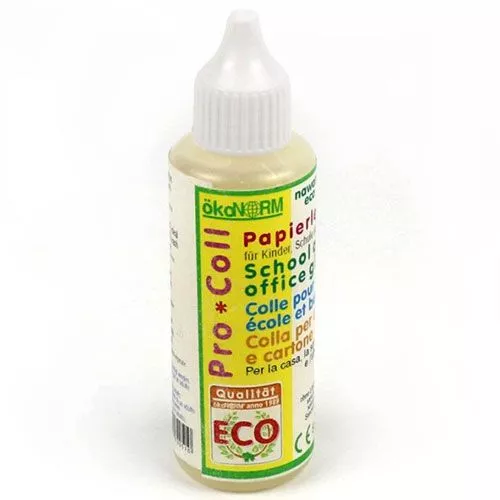 De ‘Pro Coll’ van het Duitse merk ökoNorm is geschikt voor het lijmen vab papier, karton en andere vezelmaterialen. Het is geurloos en transparant.