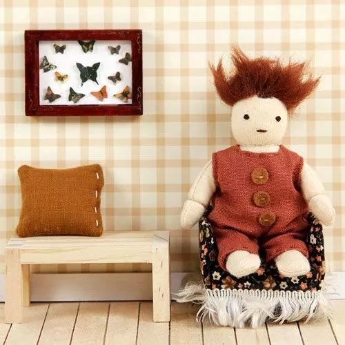 Poppenhuispopje ‘Glen’ uit de twaalfdelige ‘Holdie Folk’ serie van het Engelse merk Olli Ella. Deze handgemaakte speelgoedpopjes wonen in en om het houten ‘Holdie’ poppenhuis, maar feitelijk maakt het ze niets uit waar ze wonen. De kleine lappenpopjes hebben een perfect formaat voor kleine kinderen om overal mee naar toe te nemen of in te stoppen.