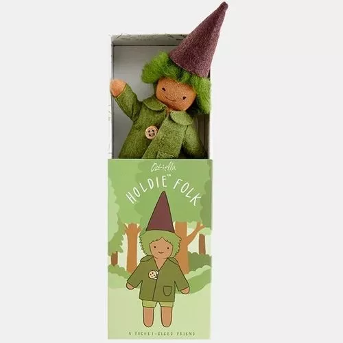 Een special edition poppenhuispopje ‘Forest’ uit de ‘Holdie Folk’ serie van het Engelse merk Olli Ella. Het handgemaakte speelgoedpopje woont in het magische Holdie Forest met zijn vriendinnetje Holly en al zijn dierenvrienden. Het kleine lappenpopje heeft een perfect formaat voor kleine kinderen om overal mee naar toe te nemen of in te stoppen.