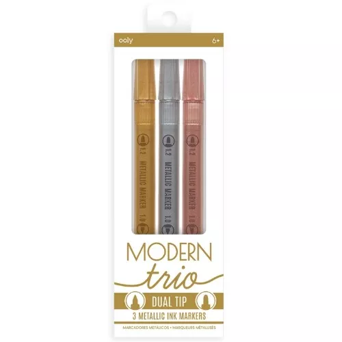 Kinderen maken de mooiste kunstwerken met deze dubbelzijdige metallic stiften ‘Modern Trio – Dual Tip Metallic Ink Markers’ van het Amerikaanse merk Ooly.