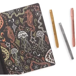 De drie stiften geven gouden, zilveren en bronskleurige metallic inkt af wanneer ze met lichte druk op papier worden gezet. Iedere stift heeft twee zijden: één met een stompe punt en één met een smalle punt. Zo is het makkelijk om zowel gedetailleerd als vrij te tekenen.