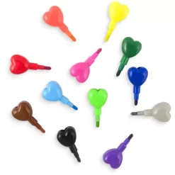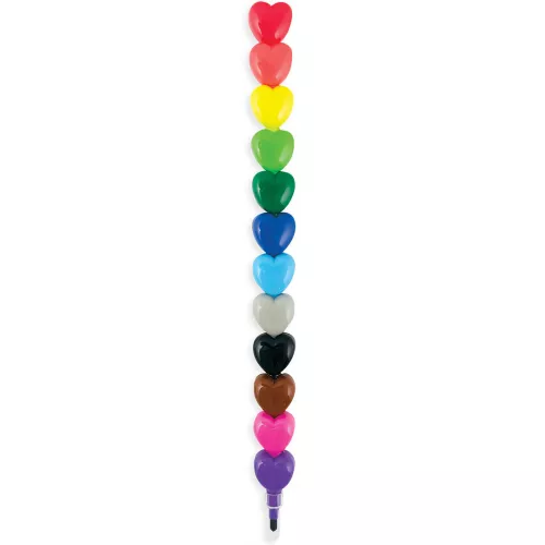Stapelbare krijtjes ‘Heart to Heart’ van het Amerikaanse merk Ooly. Twaalf verschillende kleuren hartjeskrijtjes die samen één grote pen vormen. Een andere kleur nodig? Verander de volgorde van de hartjes en kleur er op los.
