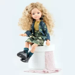 Stapop Manica uit de Amigas Articulada serie van het Spaanse merk Paola Reina is een kleine meisjespop met gekrulde wimpers, weelderige blonde krullen en prachtige sprekende, blauwe ogen.