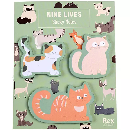 Zelfklevende memoblaadjes met drie verschillende poezen ‘Nine Lives’ van het Engelse merk Rex London.