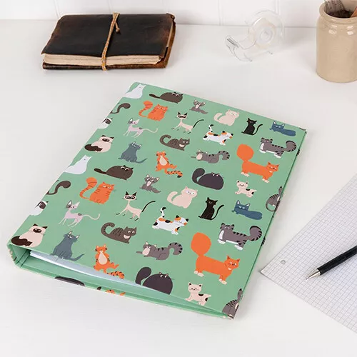 Bewaar notities, tekeningen of andere losse papieren in deze A4 multomap ‘Nine Lives’ van het Engelse merk Rex London.