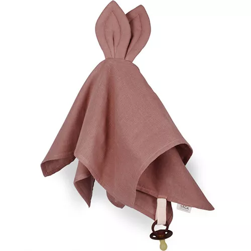 Het terugvinden van de speen wordt eenvoudig met dit zachte speendoekje met konijnenoortjes ‘Cuddle Cloth Snoppa – Burlwood’ van het Deense merk Saga Copenhagen. Een behaaglijk konijndoekje voor de allerkleinsten.