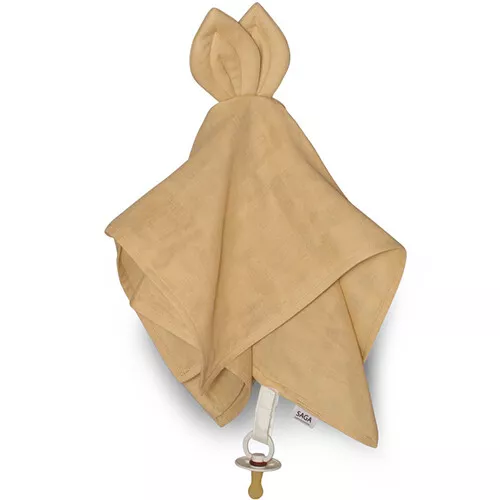 Het terugvinden van de speen wordt eenvoudig met dit zachte speendoekje met konijnenoortjes ‘Cuddle Cloth Snoppa – Ginger’ van het Deense merk Saga Copenhagen.