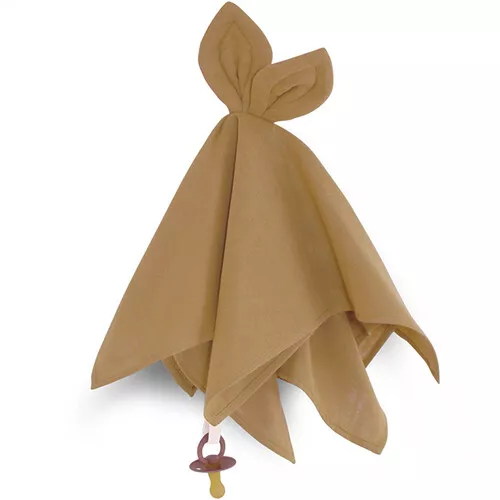 Het terugvinden van de speen wordt eenvoudig met dit zachte speendoekje met konijnenoortjes ‘Cuddle Cloth Snoppa – Honey’ van het Deense merk Saga Copenhagen.