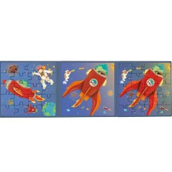 Een vrolijke astronautenpuzzel waar kleine kinderen onderweg plezier mee hebben.