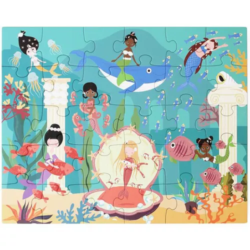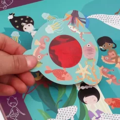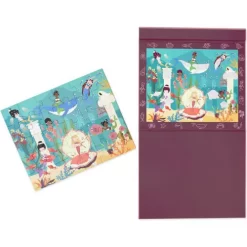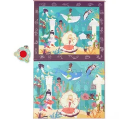Ontdek de geheimen van het onderwaterleven met deze magnetische kinderpuzzel ‘Mystery – Zeemeermin’ van het Belgische merk Scratch Europe. Het uitklapbare puzzelboek bestaat uit twee vlakken, waar bovenaan te zien is hoe de puzzel moet worden en onderaan de puzzel op het magneetvlak nagemaakt kan worden.