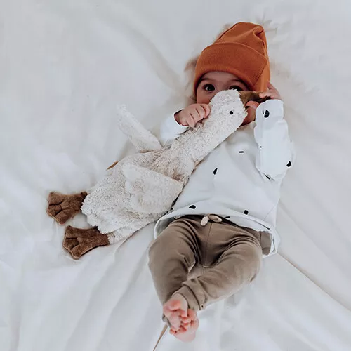 Deze zachte knuffelgans ‘Cuddly Animal Goose Small White’ van het Duitse merk Senger geeft ook graag zijn warmte af. Een vrolijke knuffelvriend en gezellig als warmtekussen in de kinderkamer. Een vriendje om te koesteren en mee te knuffelen.