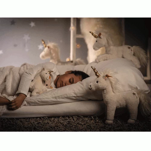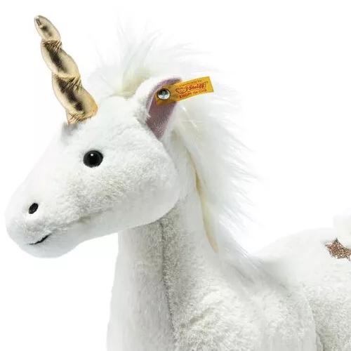 Een betoverende knuffeleenhoorn ‘Soft Cuddly Friends Unica – Unicorn’ van het Duitse merk Steiff, die tot de verbeelding spreekt van kinderen. Met haar sierlijke manen en staart van lange pluche, de glanzende, gouden hoorn en lieve kraalogen, is eenhoornknuffel hartveroverend.