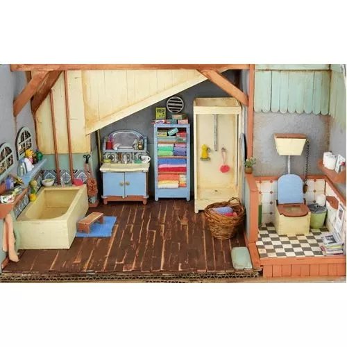 Deze knutselset bevat vier bouwplaten voor in totaal acht poppenbadkamer meubeltjes. De onderdelen van de poppenmeubels moeten uit de houten plaat gedrukt worden en kunnen vervolgens in elkaar gezet worden. Inclusief schuurpapiertje.