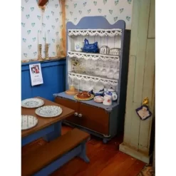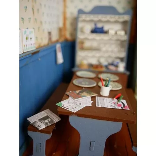 Deze knutselset bevat vier bouwplaten voor in totaal zeven poppenkeuken meubeltjes. De onderdelen van de poppenmeubels moeten uit de houten plaat gedrukt worden en kunnen vervolgens in elkaar gezet worden. Kinderen kunnen de poppenhuismeubels naar hartenlust verven en versieren.