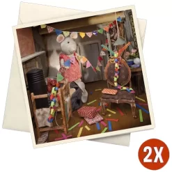 Tien verjaardagskaarten met enveloppen ‘The Mouse Mansion – Party’ van het Nederlandse merk Studio Schaapman. Stuur iemand een feestelijk kaartje met de lieflijke muisjes van het Muizenhuis.