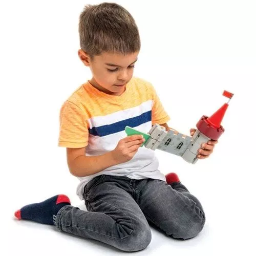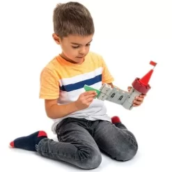 ‘Royal Castle’ van het merk Tender Leaf Toys mag zich met recht een koningskasteel noemen. Een enorme verzameling van maar liefst 100 componenten om zelf een geweldig houten speelgoedkasteel in elkaar te zetten. Doordat alle onderdelen met een kliksysteem op elkaar passen zijn diverse combinaties mogelijk, wat de creativiteit en fantasie zeker ten goede komt.