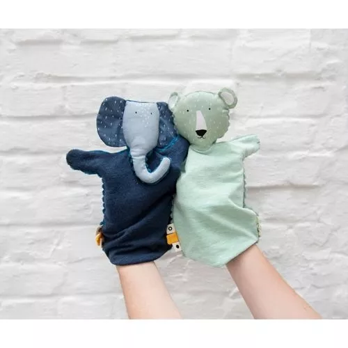 Deze vrolijke handpop ‘Handpuppet – Mrs. Elephant’ van het Belgsche merk Trixie kan niet wachten om mee te spelen in een poppenshow. Speelgoed dat de verbeeldingskracht stimuleert. Met een ruggetje van corduroy om fijn overheen te aaien.