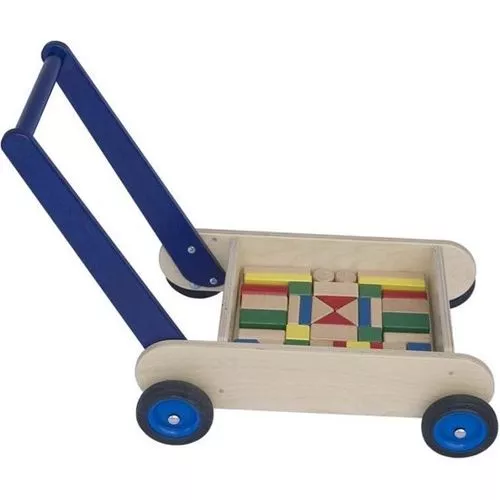 Een stabiele blokkenwagen van het merk Van Dijk Toys om speelgoed mee te voervoeren of in op te bergen. De wagen is gemaakt van stevig hout en heeft geruisloze rubberen wielen die geen sporen achterlaten. Dit mooie peuterkado is niet alleen leuk om te geven, maar ook ideaal om de eerste stapjes te oefenen.