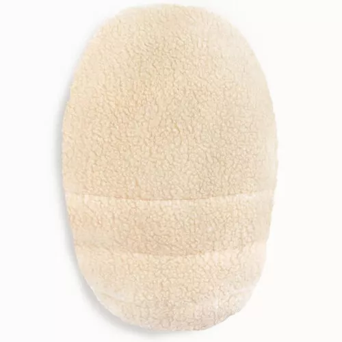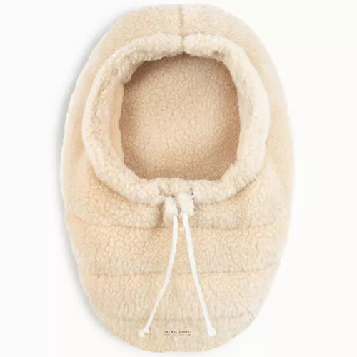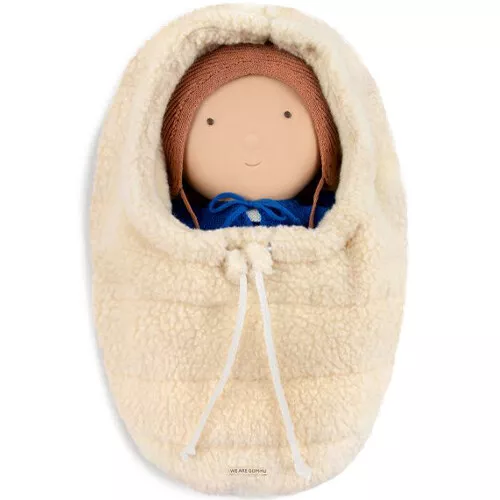 Babypoppen liggen er knus bij in deze zachte teddy ‘Footmuff Sherpa Cream’ van het Spaanse merk We Are Gommu. De voetenzak houdt de poppenvoetjes warm in de poppenwagen en is thuis te gebruiken als trappelzak of poppenslaapzak.