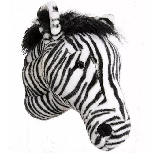 Een levensechte zebrakop voor aan de muur uit de serie Wild & Soft van het Belgische merk Bibib&co. De pluche zebra kijkt vriendelijk uit zijn bruine kraalogen de kamer in. De dierenkop heeft prachtige zwarte manen op zijn gestreepte snuit met fluwelen neusgaten. Zijn grote, zachte kop is werkelijk om te knuffelen!